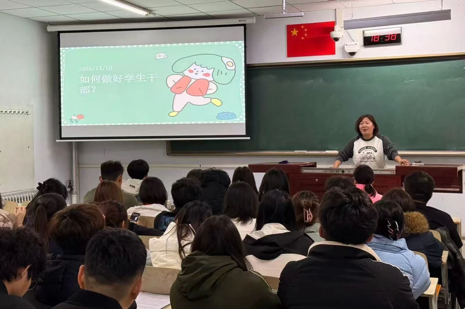 王彩霞首先围绕学生干部需具备的能力与素质开展分享:强调各部门要传承优良工作制度并创新,干部应主动加强沟通协作,主动为部门建设出谋划策,注重工作细节,勇于担当责任。同时,她明确了财务报销、活动组织等工作细则。随后,她指出学生会是成长锻炼的平台,能锤炼综合能力,助力未来发展。最后,她提出了学生会的理想状态:以“思想统一,团结奋进,纪律严明”为基础,实现个人与团队的双向提升。赵晓伟强调,学生干部在工作中需及时反馈相关问题与困难,避免信息遗漏或者临时突发状况,有效防范工作风险,保障各项工作有序高效推进。