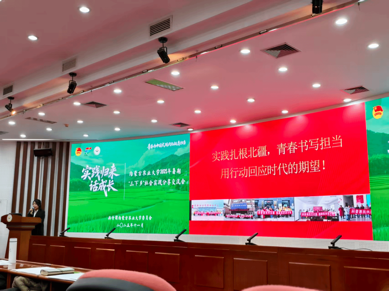 11月20日下午,内蒙古农业大学“实践归来话成长”2025年暑期三下乡社会实践分享活动如期举行,食品科学与工程学院23级食品4班学子张溢格代表学院登台,分享“科普宣传惠北疆,营养健康助万家”实践行动的点滴。