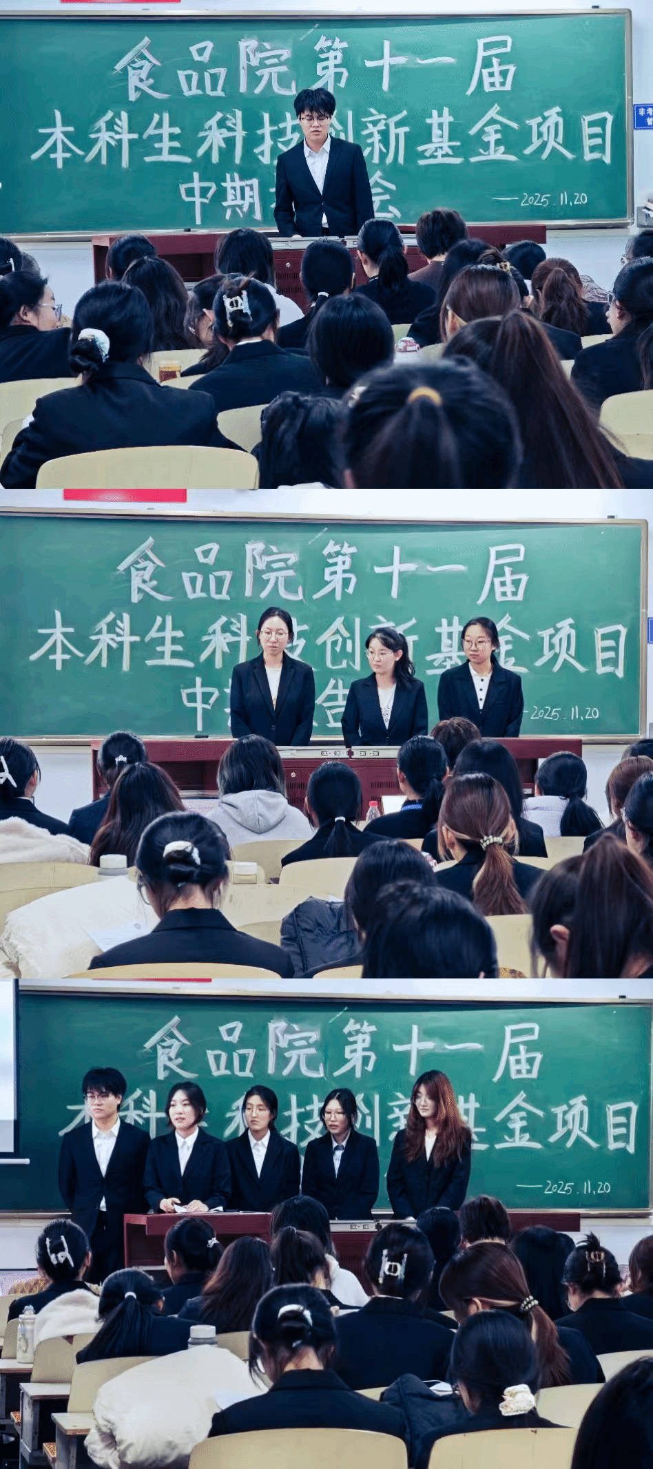 为强化本科生科研创新能力、抓实科创项目过程管理,通过系统性中期评估助力各项目组精准破题,11月20日15:00,我院在博学楼311教室举办食品科学与工程学院第十一届本科生科技创新基金项目中期报告会。