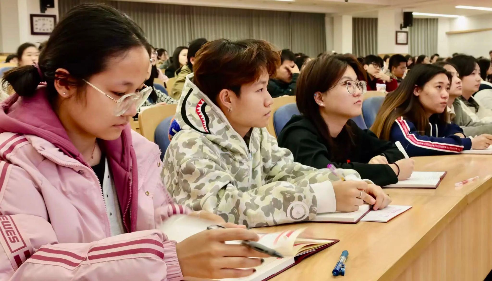 2025年10月23日下午,学院党员培训大会于博学楼科技报告厅召开。食品科学与工程学院党委副书记庄霞、乳业学院党委副书记葛飞及全体学生党员出席会议,会议由专职组织员希吉日主持。