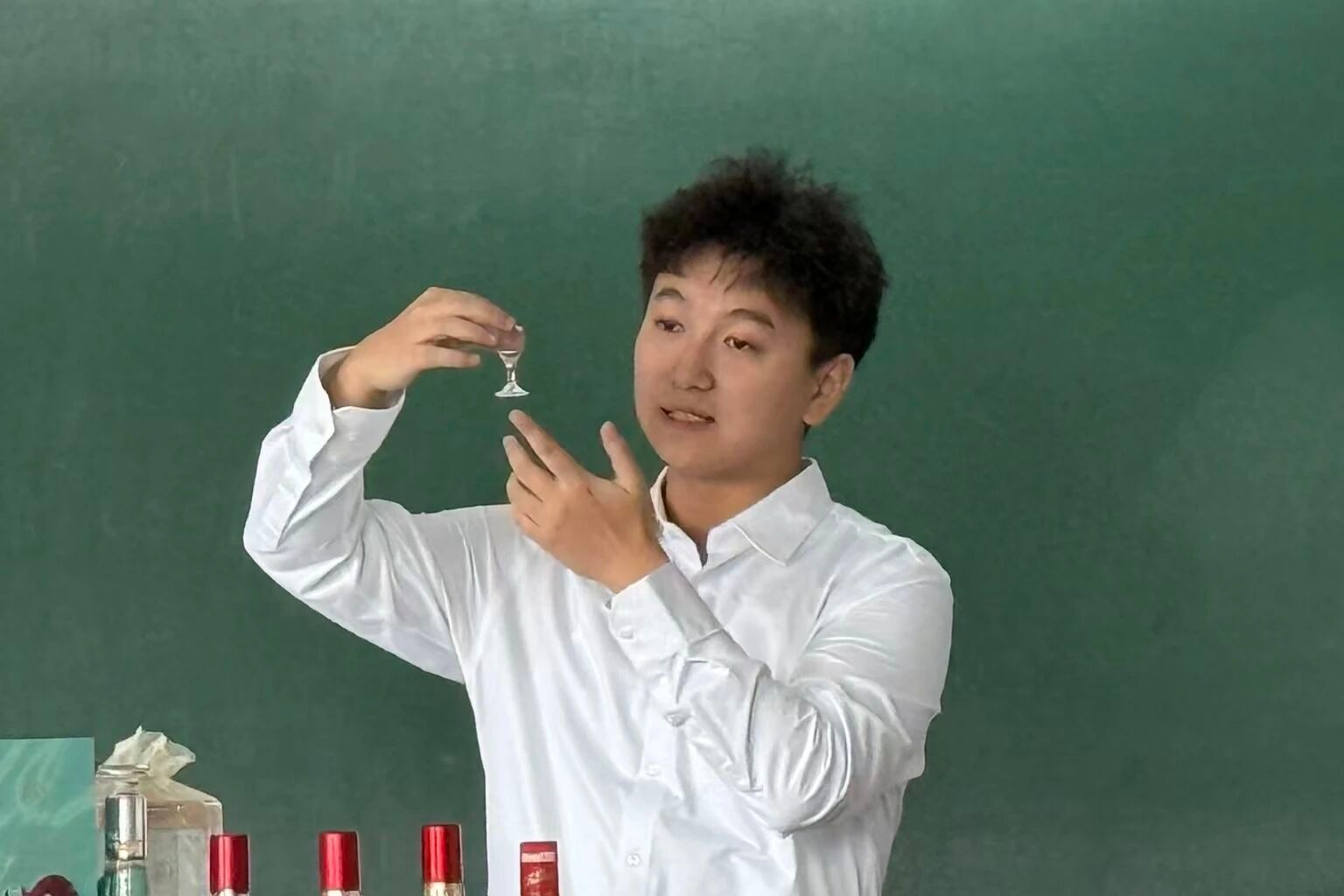 活动现场,黄秋杨经理系统介绍了五粮液集团的综合实力与核心优势。他提到,五粮液作为以酒业为核心、多领域协同发展的大型国有企业,不仅在白酒行业稳居前列,更在现代制造、物流、金融、健康产业等板块形成特色布局。针对学生们关注的酒业主业,黄经理重点解读了“窖池老、工艺优、品质佳、口碑好、得名早”五大核心优势。同时,集团为每一位参加分享会的学生准备了五粮液的经典产品,黄秋杨经理生动示范了“五步品酒法”,让学子们感受千年酿造工艺的独特魅力。现场还开展了问答互动环节,每一位参与问答的同学都获得了五粮液集团准备的精美礼物。