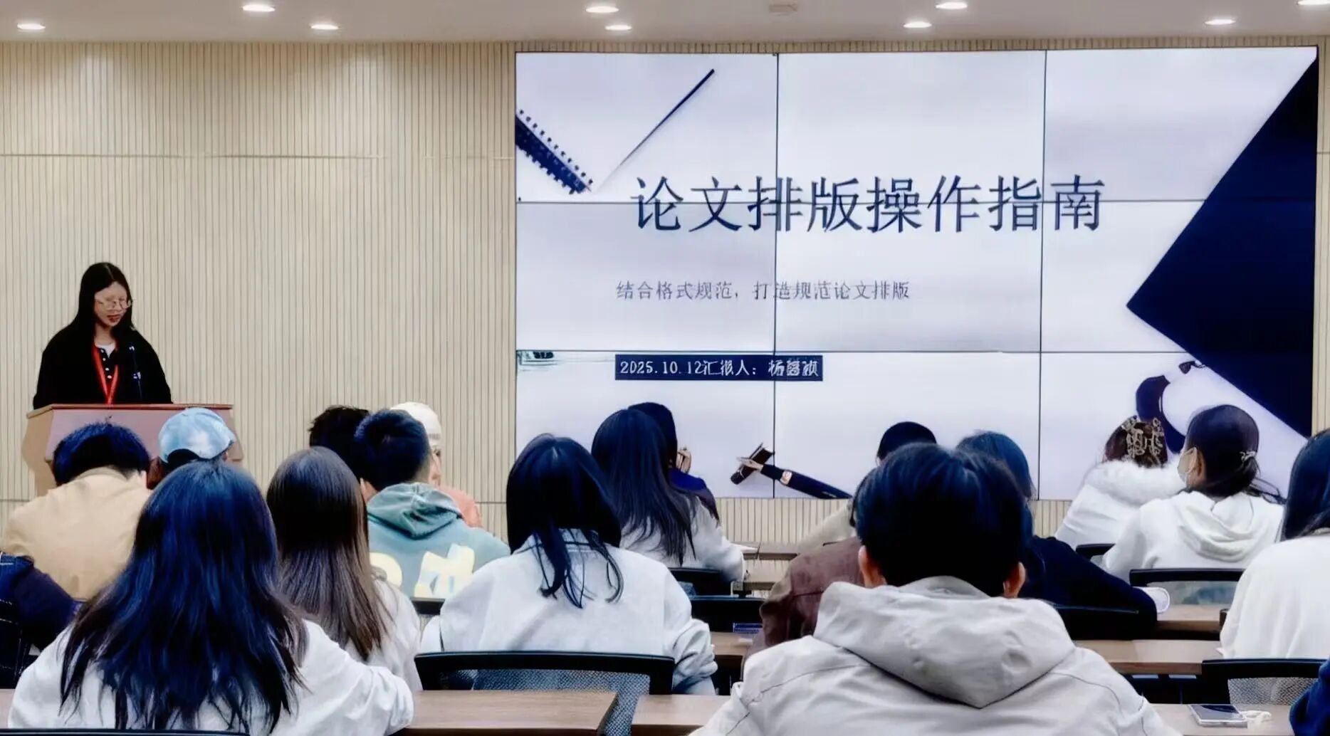 会议初始,宣传部部长李静围绕论文撰写展开系统性的讲解。她从论文写作的基本逻辑入手,深入解析各部分的写作要点,帮助干事构建清晰的写作思路。紧接着,宣传部部长杨蕙祯进行现场操作演示,详细介绍了论文排版的具体步骤与注意事项,使部员们对排版有了更直观的理解。两位部长的讲解条理清晰,兼顾理论指导与实践演示,让同学们可以快速掌握论文写作与排版的相关知识。