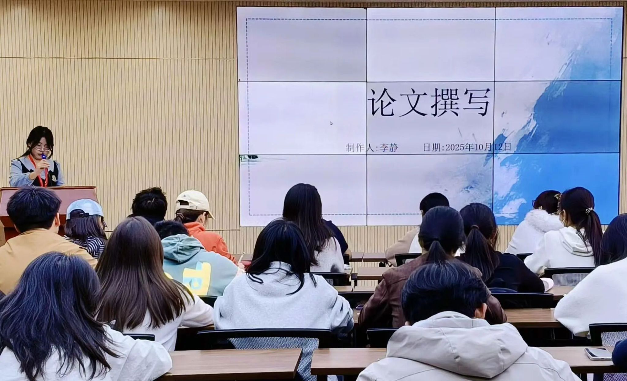 随后,宣传部部长王亚楠基于综述的定义,向大家讲解了其具体内涵。她通过对比综述与论文的差异,帮助大家明确写作重点。她还从摘要撰写、关键词提取、正文结构安排与文献引用等方面进行了介绍,有效提升了大家的综述写作能力。