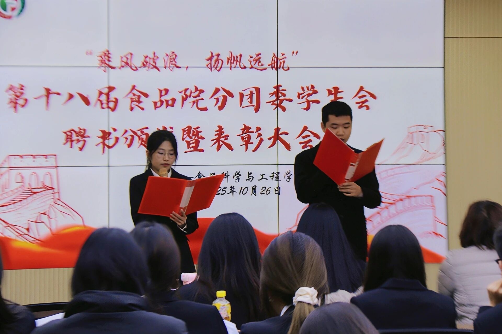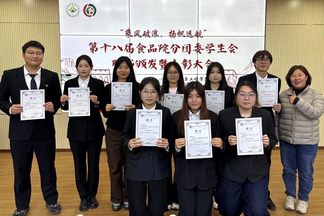 金秋送桂香,青春续华章。10月26日19:00,我院第十八届分团委学生会聘书颁发暨表彰大会在乳品楼会议室顺利举行。学院团委副书记王彩霞,第十八届分团委学生会副书记王耀梓,副主席康饶文及第十八届分团委学生会部长、干事出席本次活动,共同回顾奋斗历程,开启崭新征程。